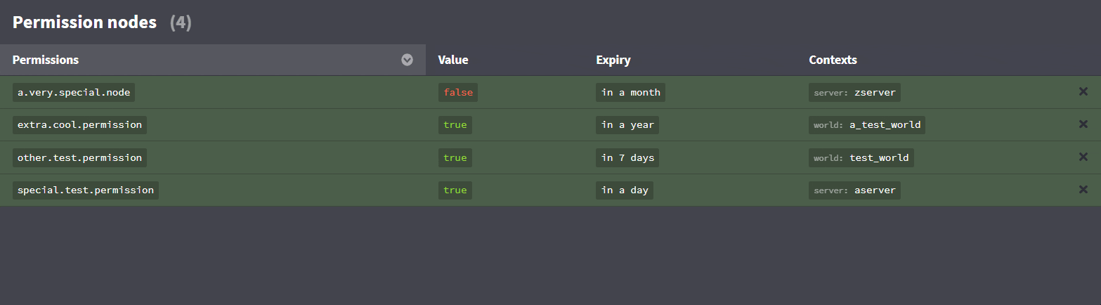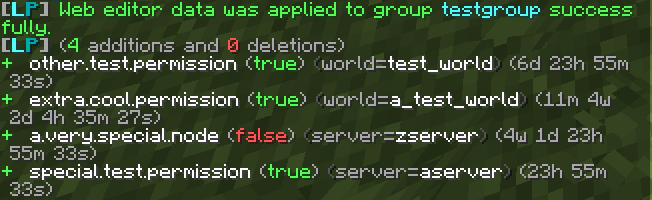 LuckPerms features a web editor, which allows you to make changes to permissions data using a friendly interface in your web browser. It is safe, secure and easy to use. You don't need to host the page yourself - and it works for all storage types!